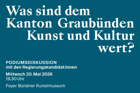 Eingeladen vom Bündner Kunstverein, dem Kirchner Museum Davos, Kulturkanton Graubünden, Museen Graubünden, Origen, dem Theater Chur und Visarte Graubünden sprechen die Kandidierenden über Prioritäten, Förderung und Perspektiven der Kultur im Kanton.